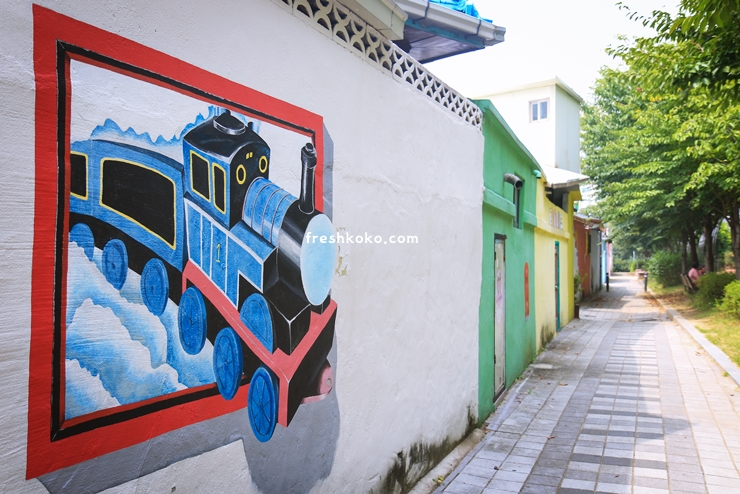 아양기찻길을 시작으로 쭉 걷다보면 만나게 되는 벽화마을입니다. 작지만 아기자기한 맛이 있는 옹기종기행복마을에서 여유로운 여행을 즐겨보시길 바랍니다.