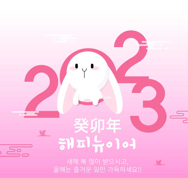 계묘년 풍요로운 검은토끼의 해가 떠올랐습니다. 2023년에는 행복의 상징 토끼가 복을 마음 껏 선물하리라 믿습니다. 하시는 일마다 만사형통하시고 새해 복 많이 받으시길 바랍니다.