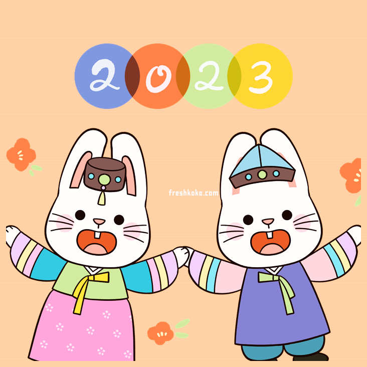 - 2023년 밝아오는 귀엽고 앙증맞은 토끼의 해 계묘년에는 지난해보다 더욱 빛나고 풍성한 나날 되시기를 기원합니다. Happy New Year~ 해피 설날 보내세요.