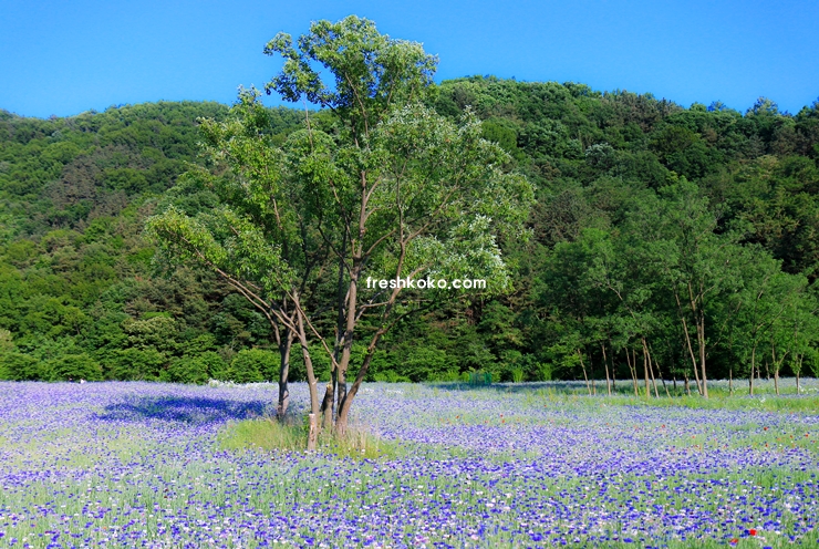 보라빛 수레구화와 듬성듬성 빨간 양귀비가 조화를 이루는 아름다운 5월 축제 가볼만한 곳 입니다.