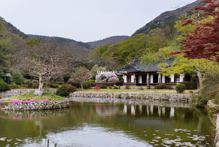 봄, 여름, 가을, 겨울 사계절 언제나 멋지고 아름다움을 머금고 있는 남해안 가볼만한곳 베스트10입니다. 맑은 연못에 비추는 나뭇가지들과 한옥건물의 모습이 아름다운 곳 입니다.