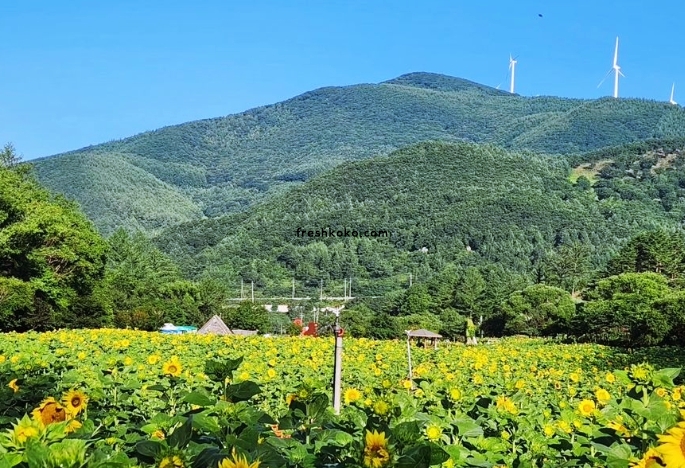 해바라기와 함께 태백 구와우 마을의 아름다운 풍경을 눈에 담을 수 있는 8월 여행하기 좋은곳 입니다.