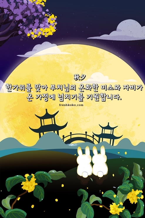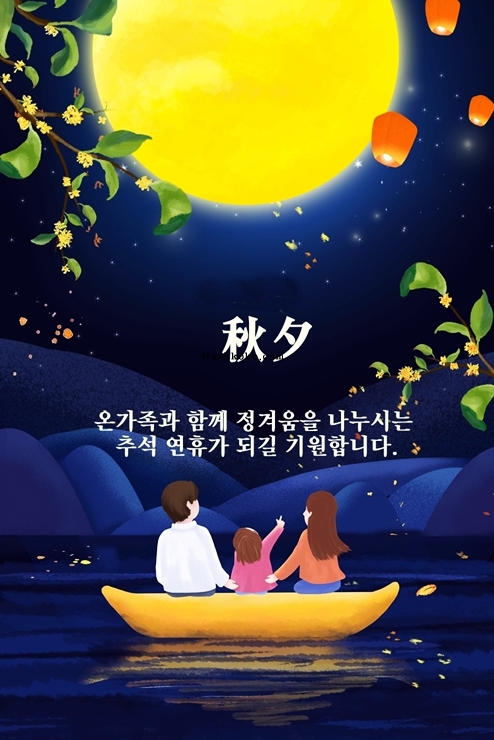 24. 풍요롭고 평안한 추석명절 보내시고 환화게 비추는 보름달처럼 가정에 늘 건강과 행운이 깃들길 기원합니다.