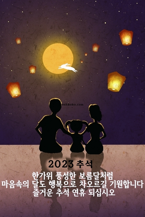 19. 2023년 추석 한가위 풍성한 보름달처럼 마음속의 달도 행복으로 차오그길 기원합니다. 웃음가득 추석 연휴 보내시길 기원합니다.