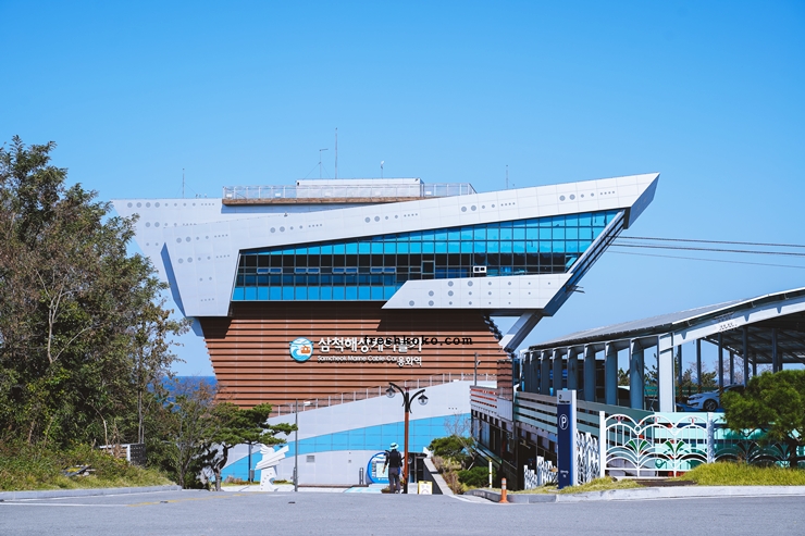 장호항 근처에 있는 해상케이블카는 874m 구간으로 약 10분이내 주행하며 마치 바다위를 걷는듯한 느낌을 선사해주는 삼척 가볼만한곳 입니다.