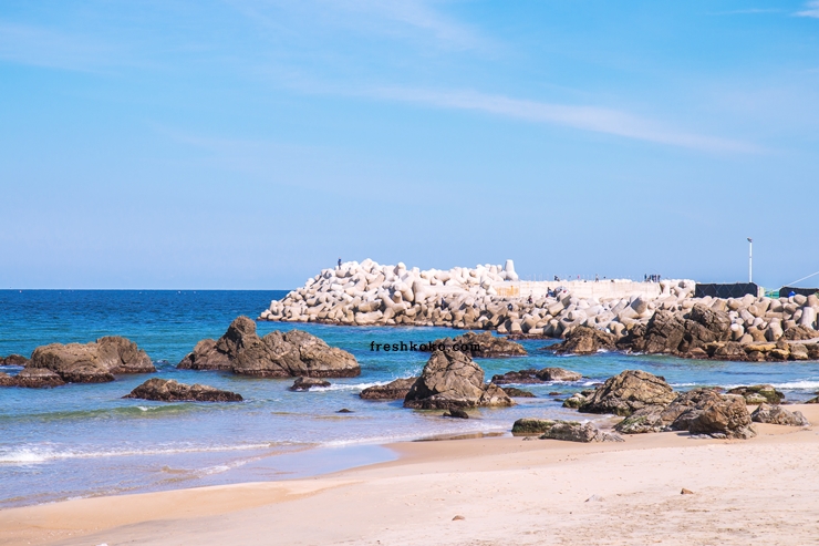 수온이 따뜻하여 10월까지 물놀이를 즐길 수 있는 삼척 가볼만한곳 입니다. 주변이 돌로 둘러싸여 있어 파도가 적고 수심이 얕아 안전하게 물놀이를 할 수 있는 여행장소 입니다.