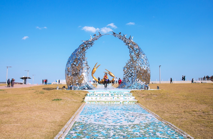 입구에서부터 크나큰 고래 조형물이 맞이해주는 곳으로 알록달록 방파제 산책길이 유명한 곳 이기도 합니다. 또한 모래사장 드넓어 여유롭고 한가로이 해변여행을 즐길 수 있는 명소 입니다.