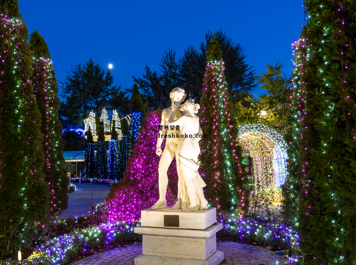 빛축제의 그림 같은 장소일 뿐만 아니라, 다양한 한국 드라마와 뮤직비디오의 촬영지로도 활용되어 그 매력을 더해왔습니다. 정원에는 유령의집, 동물놀이터, 온실, 전통민속놀이, 정원, 어린이놀이터 등 다양한 볼거리가 마련되어 있는 12월에 가볼만한 국내 여행지 입니다.
