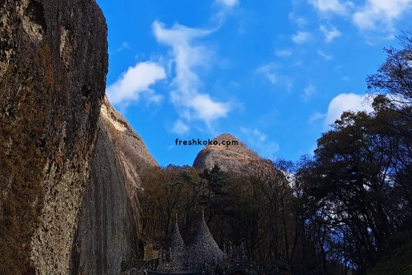도착하자마자 눈 앞에 펼쳐진 것은 울창한 숲과 기암괴석이 어우러진 장관이었습니다. 숲 속의 길을 따라 걷기 시작했고, 새들의 지저귀는 소리와 바람에 흔들리는 나뭇잎 소리가 어우러져 마치 자연의 오케스트라 같았습니다.