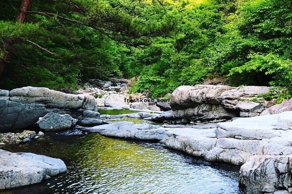 길을 따라 조금 더 걷자, 운일암의 첫 번째 비경인 바위와 폭포가 나타났습니다. 물은 은은하게 흘러 바위를 적시고 있었고, 그 모습이 마치 동양화 속 한 폭의 그림처럼 아름다웠게 느껴진 진안 가볼만한곳 베스트10 입니다.
