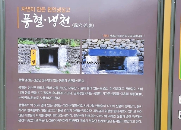 신비로운 자연 속에서 나의 발걸음은 풍혈냉천(風穴冷泉)으로 향했습니다. 이곳은 땅속 깊은 곳에서 솟아나는 차가운 물과 신선한 공기가 만나는, 자연이 만들어낸 기적 같은 진안 가볼만한곳 베스트10입니다.