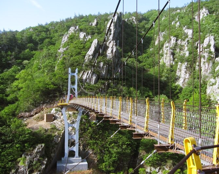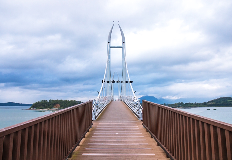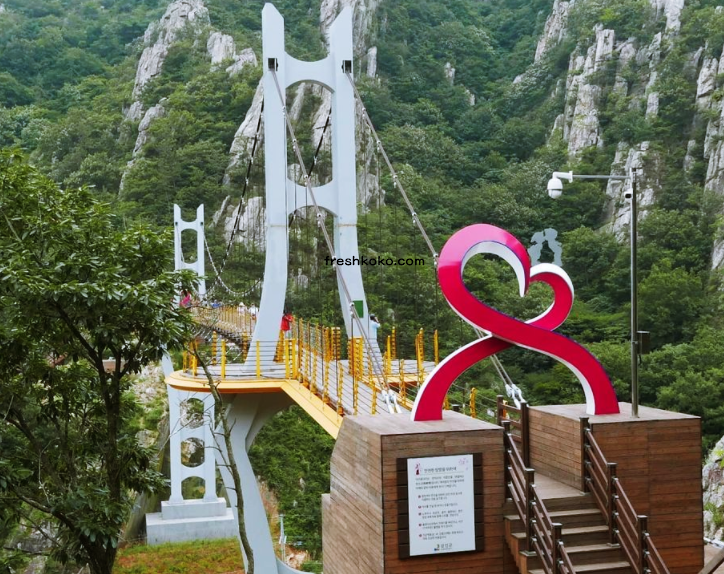 다리는 길이 111m, 폭 1.5m의 산악현수형 출렁다리로, 만덕산과 석문산 사이 단절된 등산로를 연결합니다. 구름다리 양끝에는 하트 모양의 게이트 겸 포토존 조형물이 설치되어 있어, 등산객들에게는 만남의 장소로, 연인들에게는 사랑이 이뤄지는 장소로 인기가 많습니다.
