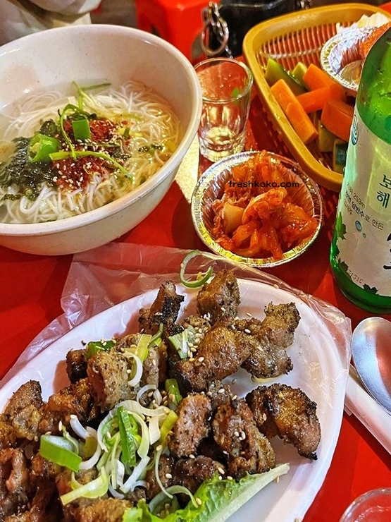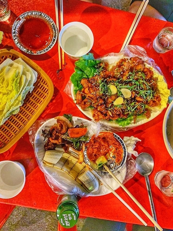 포차거리의 메뉴는 대부분 2만 원으로 동일하며, 현금 또는 계좌 이체로만 결제가 가능합니다. 대부분의 식재료는 국내산을 사용하고 있어 안심하고 먹을 수 있습니다.