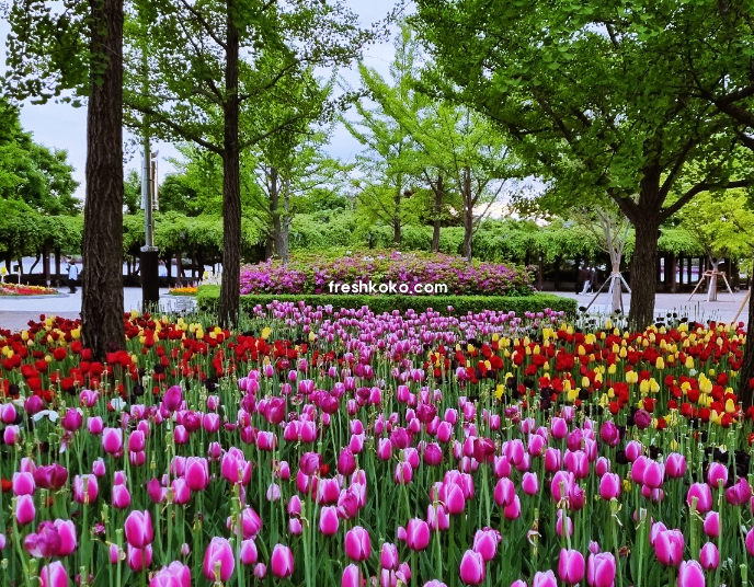 튤립 외에도 다양한 봄 꽃들이 함께 전시되어 방문객들은 다양한 볼거리를 만끽할 수 있습니다.