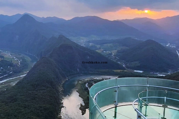 스카이워크 자체는 투명한 바닥을 가진 U자형의 구조물로, 절벽 끝에 설치되어 있습니다. 방문객들은 이 구조물을 따라 걸으며 마치 하늘을 걷는 듯한 느낌을 경험할 수 있습니다. 바닥이 투명하기 때문에 아래로는 깊은 골짜기와 흐르는 강을 볼 수 있어, 아찔한 스릴과 함께 장관의 경치를 감상할 수 있는 정선 가볼만한곳 베스트10입니다.