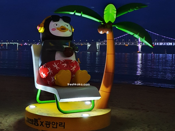 펭수와 함께 해변을 따라 조성된 산책로는 산책이나 조깅을 즐기기에 좋습니다. 해변을 걸으며 시원한 바닷바람을 느낄 수 있습니다.