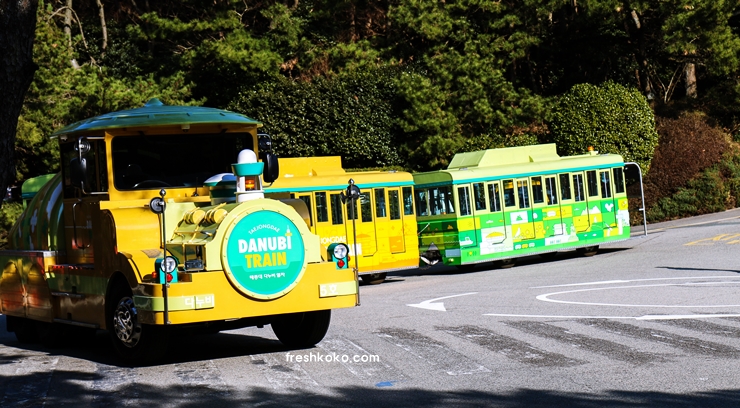 태종대 내에서는 다누비 열차를 이용해 편리하게 이동할 수 있습니다. 열차를 타고 태종대의 주요 포인트를 둘러보며 경치를 즐길 수 있습니다.