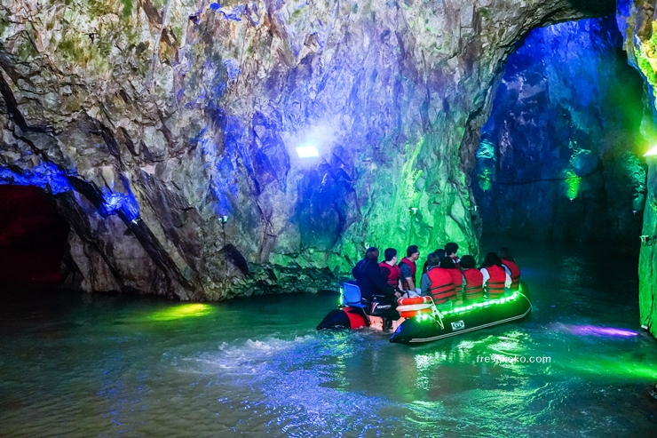 동굴 탐험 중에는 헬멧을 착용해야 하며, 계단과 낮은 천장 구간이 많아 조심해야 합니다. 특히, 이승굴과 저승굴 구간은 좁고 경사가 급해 주의가 필요합니다. 동굴 출구 쪽에는 다양한 보석과 원석이 전시된 공간도 있어 볼거리가 풍부합니다.