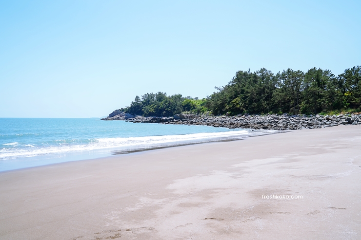 해수욕장 뒤편으로는 울창한 송림이 있어 그늘에서 피서를 즐기기에 좋습니다. 자연 속에서의 휴식을 원하는 방문객들에게 안성맞춤입니다.