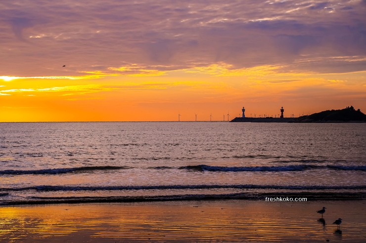 해변 어디서든 아름다운 일몰을 감상할 수 있지만, 특히 방파제 근처나 해변 끝자락이 좋은 포인트로 알려져 있습니다.