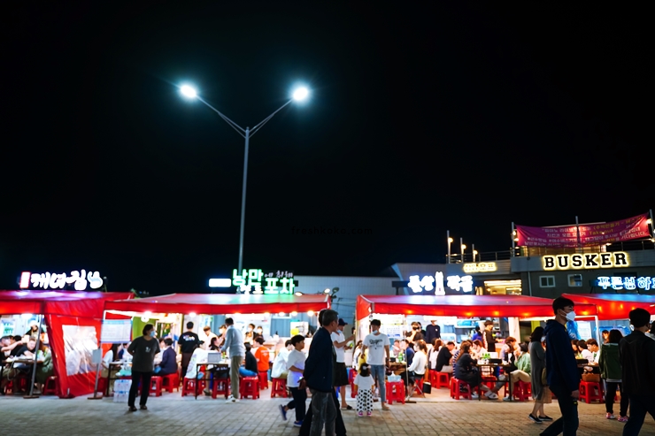 낭만포차거리에는 수십 개의 포차가 줄지어 늘어서 있어 다양한 음식과 음료를 즐길 수 있습니다. 각 포차는 특색 있는 메뉴를 맛볼 수 있으며, 해산물 요리부터 한식, 퓨전 음식까지 다양한 맛을 경험할 수 있는 식도락 여행장소 입니다.