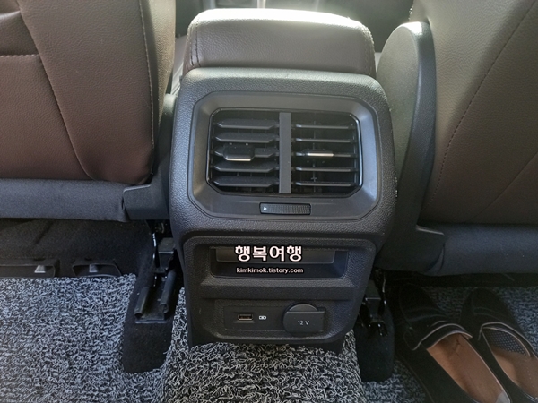 뒷좌석 또한 에어컨을 직접 조절할 수 있으며 usb 단자 그리고 12v 충전기가 마련되어 있다. 트렁크공간도 생각보다 넓어 충분히 2인 차박이 가능하다.