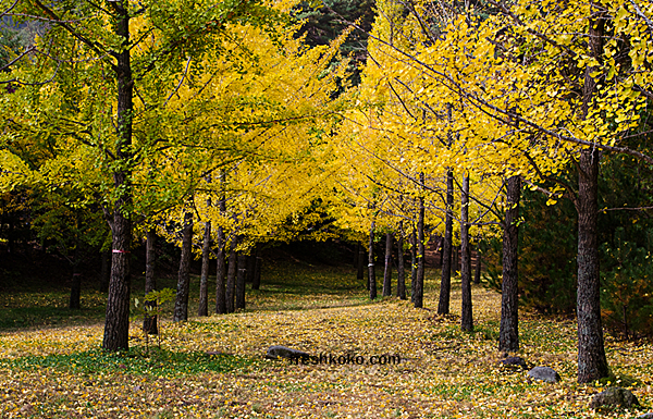 년 중 10월에만 무료개방이 되며 이때 노란 은행나무 잎을 감상할 수 있습니다. 약 2천그루의 은행나무가 숲을 이룬 은행나무숲은 살면서 한 번쯤 꼭 가볼만한 숲입니다.