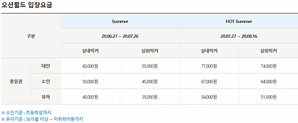 입장요금은 종일권(주간+야간) 대인 43,000원, 소인 33,000원
