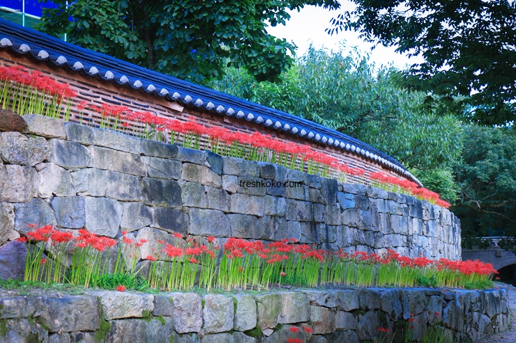 불갑사 들어가기 전 하천의 모습입니다. 하천에 여기저기 빨간 상사화가 피어있습니다.