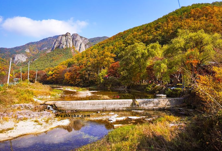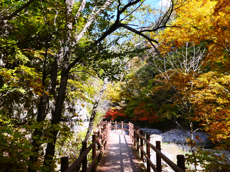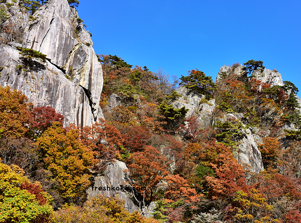 거대한 기암괴석 아래 알록달록 물든 단풍잎을 마음껏 감상할 수 있는 곳으로 가을에 오시면 형형색색의 고운 단풍으로 치장하는 곳 입니다. 매년 10월말에서부터 11월초까지가 가장 아름다운 시기입니다.