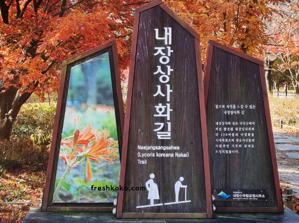 내장산상사화길도 아름답기로 유명합니다. 또한 케이블카를 이용하여 정상까지 올라가면 한 눈에 아름다운 단풍을 만끽할 수 있기때문에 다리가 불편하신 어르신들도 충분히 단풍 여행하기 좋은곳 입니다.