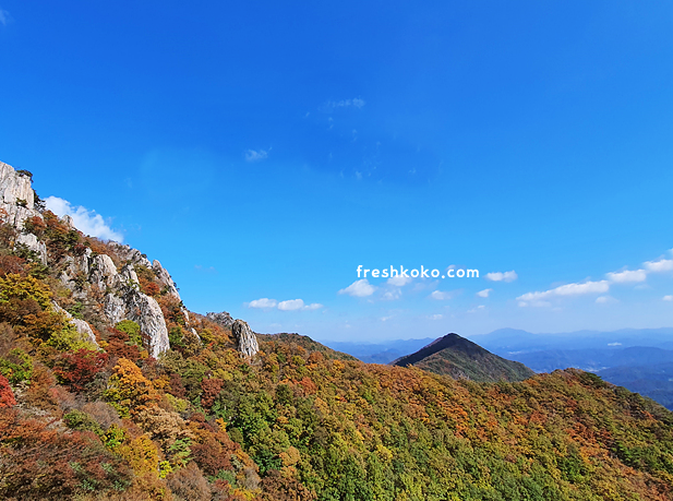 정상에 서서 바라보는 풍경 진짜 아름답습니다. 한폭의 수채화가 따로 없습니다. 전국 어디를 가보 이만큼 아름다운 가을을 만끽할 수 없을 것 입니다.