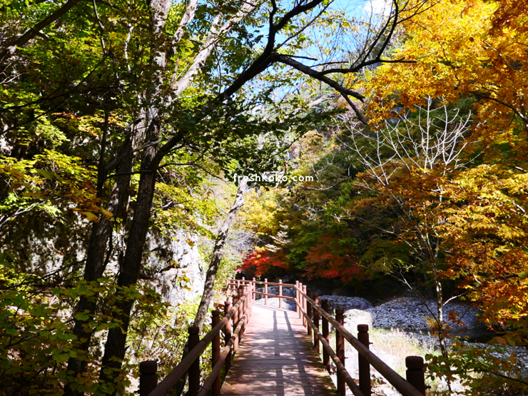 주왕산 단풍구경은 완만한 경사로로 누구나 부담없이 탐방할 수 있는 주왕계곡 코스가 가장 좋습니다. 상의주차장 - 용추폭포 - 내원동까지 약 소요시간은 왕복 2시간 30분입니다.